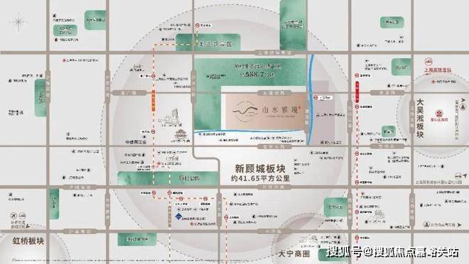 项目所在的“新顾城”位置得天独厚, 周边S7、郊环、外环3条高速公路沪太公路、宝安公路等城市主干路近身环绕,南拥顾村公园,北有美兰湖,区域内河网密布、水绿交融、生态环境优越。