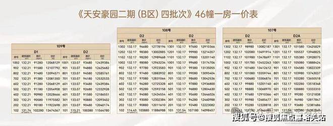 在售四五六批次一房一价表