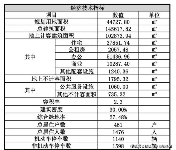 根据项目方案显示,拟建4栋住宅楼、1栋公共租赁住房、7栋花园式办公楼、2栋办公塔楼及其配套裙房、变电站、公共服务设施、社区配套设施以及地下车库等。总建筑面积预计约为14.6万平方米,其中住宅建筑面积约为4.1万平方米,办公建筑面积约为5.1万平方米,商业建筑面积约为1.0万平方米,规划总户数为461户。。预计可售房源约421套。