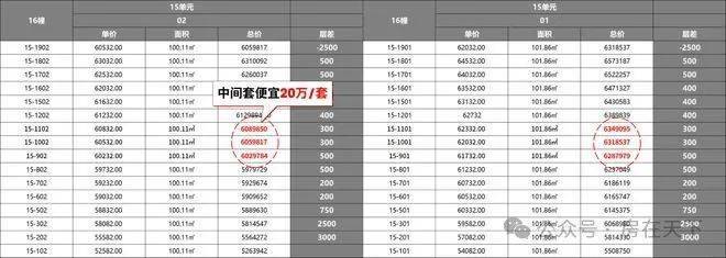 从一房一价表看,小胖君认为低区性价比更高。