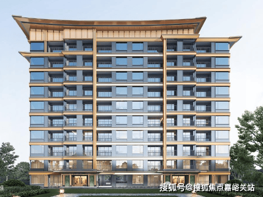 奢美立面:香槟金铝板一体板搭配大面积玻璃,搭配宋式飞檐,颜值与质感并存,历久弥新。