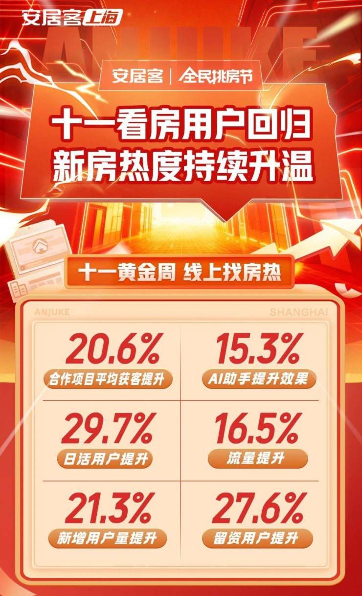平台数据同样为假期上海楼市的火热提供了有力佐证:安居客数据显示,上海 “十一” 期间看房用户显著回归,新房市场热度持续攀升,日活跃用户提升29.7%。