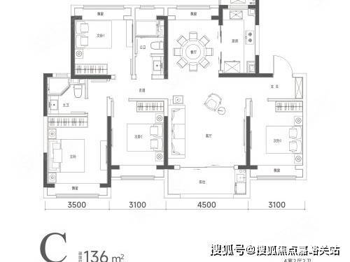 建面约 136㎡ | 4 房 2 厅 2 卫(奢阔四房)
