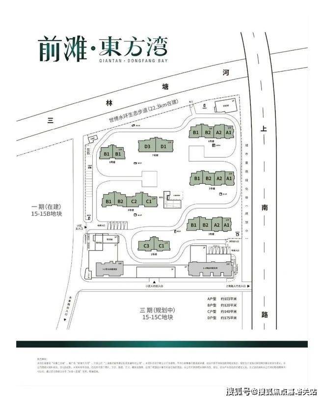 前滩东方湾,永泰三里城二期,浦东新区三林社区Z000701单元15-15A地块(“城中村”改造项目——三林镇金光村地块)。