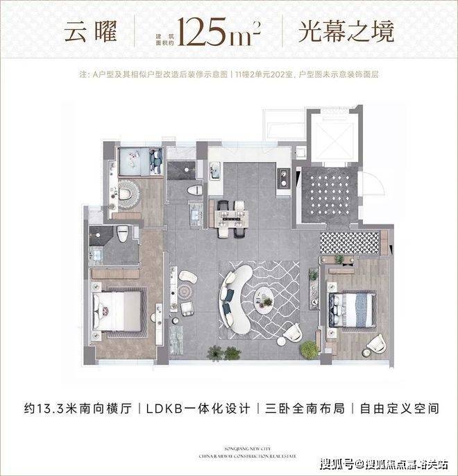 LDKB 一体化 + 宽景阳台,通透大气。