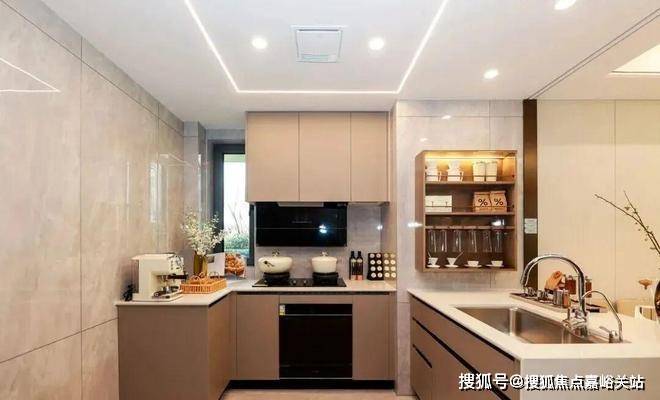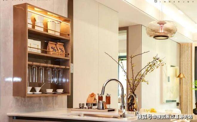 半开放式厨房,打破了传统的全封闭设计,与餐厅无界相通,面朝客厅与阳台,形成S型流畅生活动线,也打破了居家生活的空间隔阂,无形之间,增强家人之间在日常时刻的交流与互动。