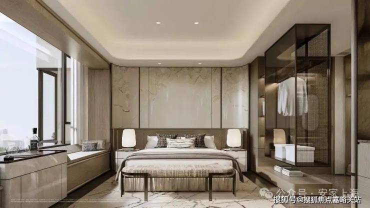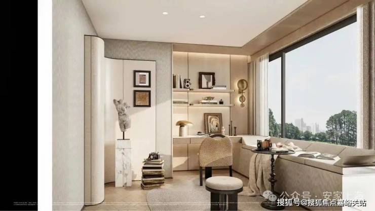 主卧套房尤其吸睛!以 270°转角飘窗打破传统空间边界,配合双台盆、大尺度衣帽间等顶配细节,将奢华居住体验浓缩于每一寸空间。飘窗台延伸出的休憩区与窗外景观形成对话,让私密时光也充满诗意。