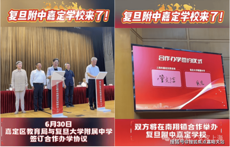 6月30日, 嘉定区教育局与复旦附中签订合作办学协议,双方将在南翔镇举办复旦附中嘉定学校!