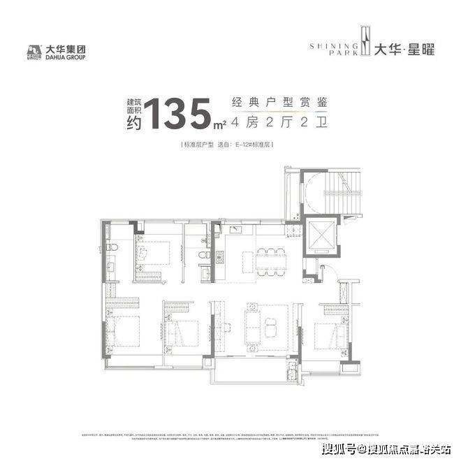 建面约120㎡的产品,市面上大多都是3房,但大华星曜做了4房的设计,实用性非常出色。