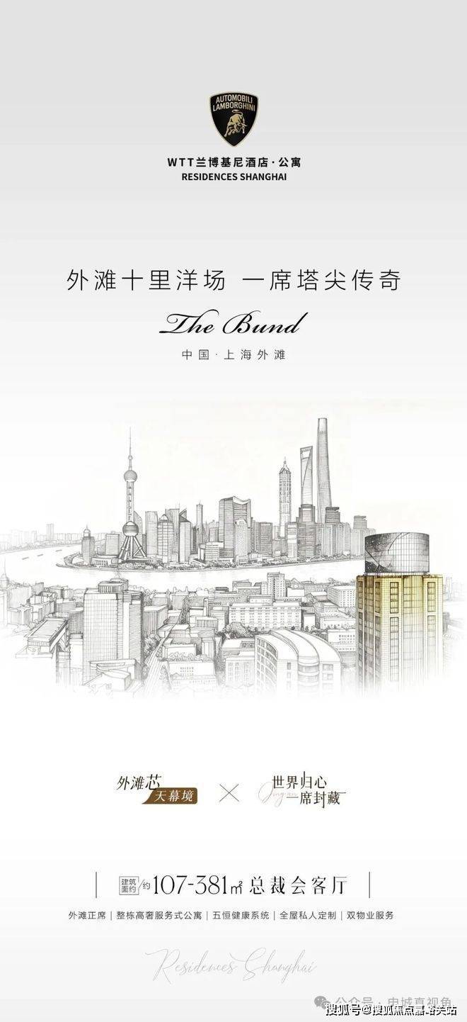 WTT 兰博基尼酒店·公寓,以兰博基尼奢品基因、外滩绝版地段、不限购通燃气、七星酒店服务、国际大师奢装、高性价比六大核心优势,重新定义上海外滩顶奢服务式公寓标准。项目低区热销、高区稀缺席位递减,严格实行预约制看房。恭迎全球塔尖人士莅临品鉴,收藏外滩核心恒产,奢享兰博基尼式塔尖生活!
