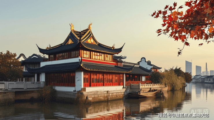 走进小区瞬间被其独特的建筑语言所震撼——香槟金铝板与红砖拼贴工艺犹如交响乐章,将英伦古典韵味与本土文化巧妙嫁接。复刻自英国乡村别墅的优雅轮廓上,点缀着枫泾古镇特有的黛瓦元素,仿佛时空在此交融对话。建筑顶部起伏的金冠造型与河道波光相映成趣,串联起一条贯穿东西的城市天际线,这般巧思堪称现代版“移步换景”。