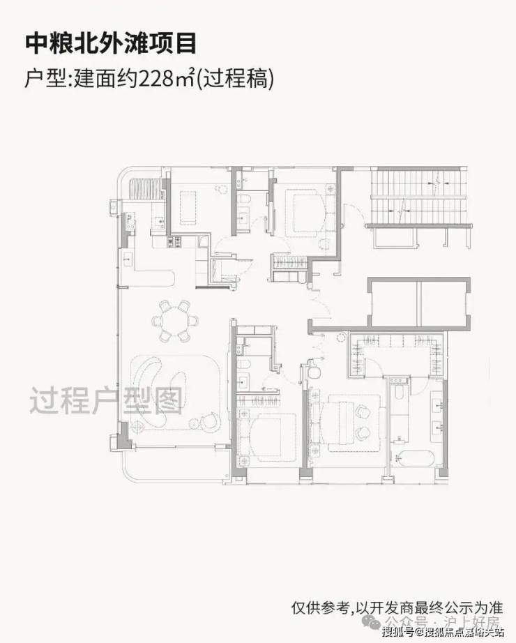 【中粮·北外滩壹号】推出高层户型建面约185-228㎡纯粹4房,尺度感相当奢阔!高层户型均为两梯两户独立电梯厅配置,隐私性与尊崇感拉满!