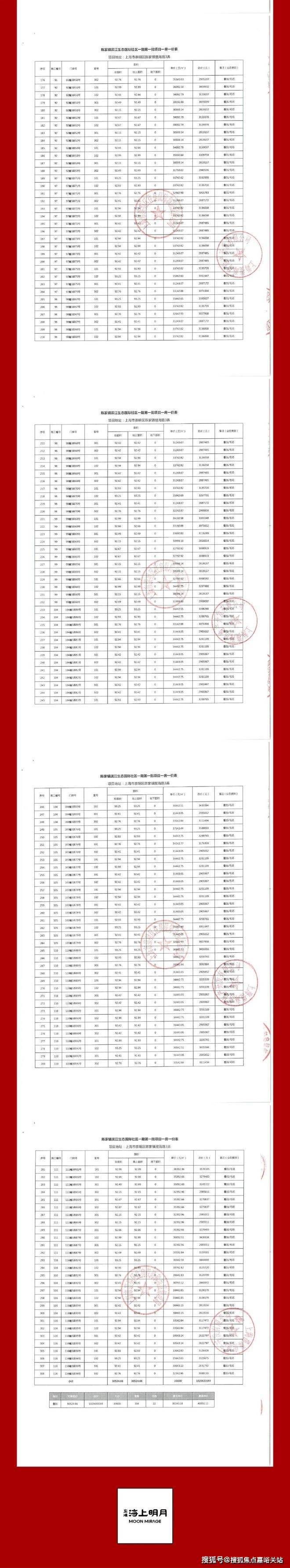 一房一价表公示: