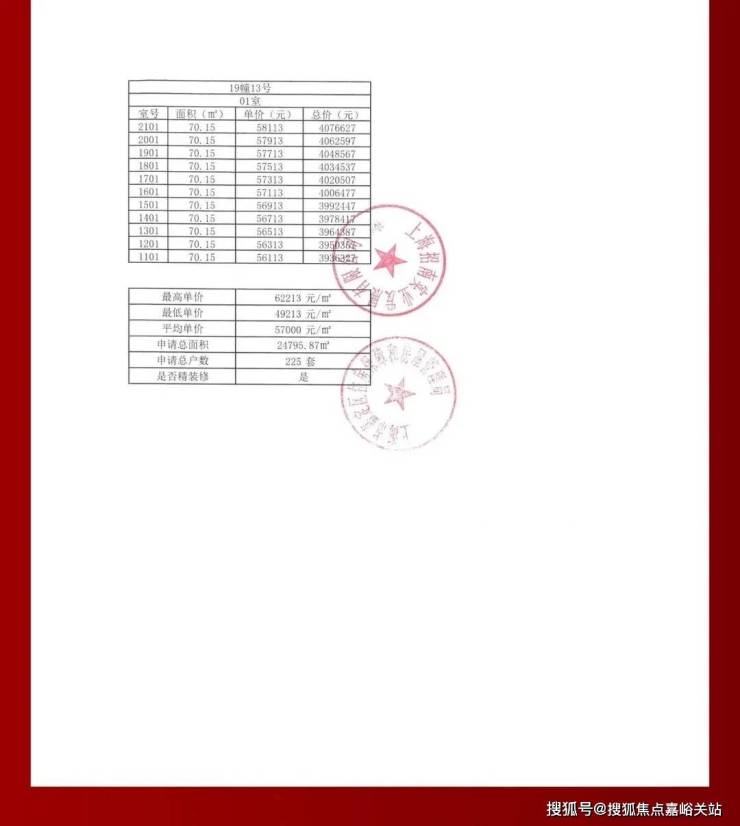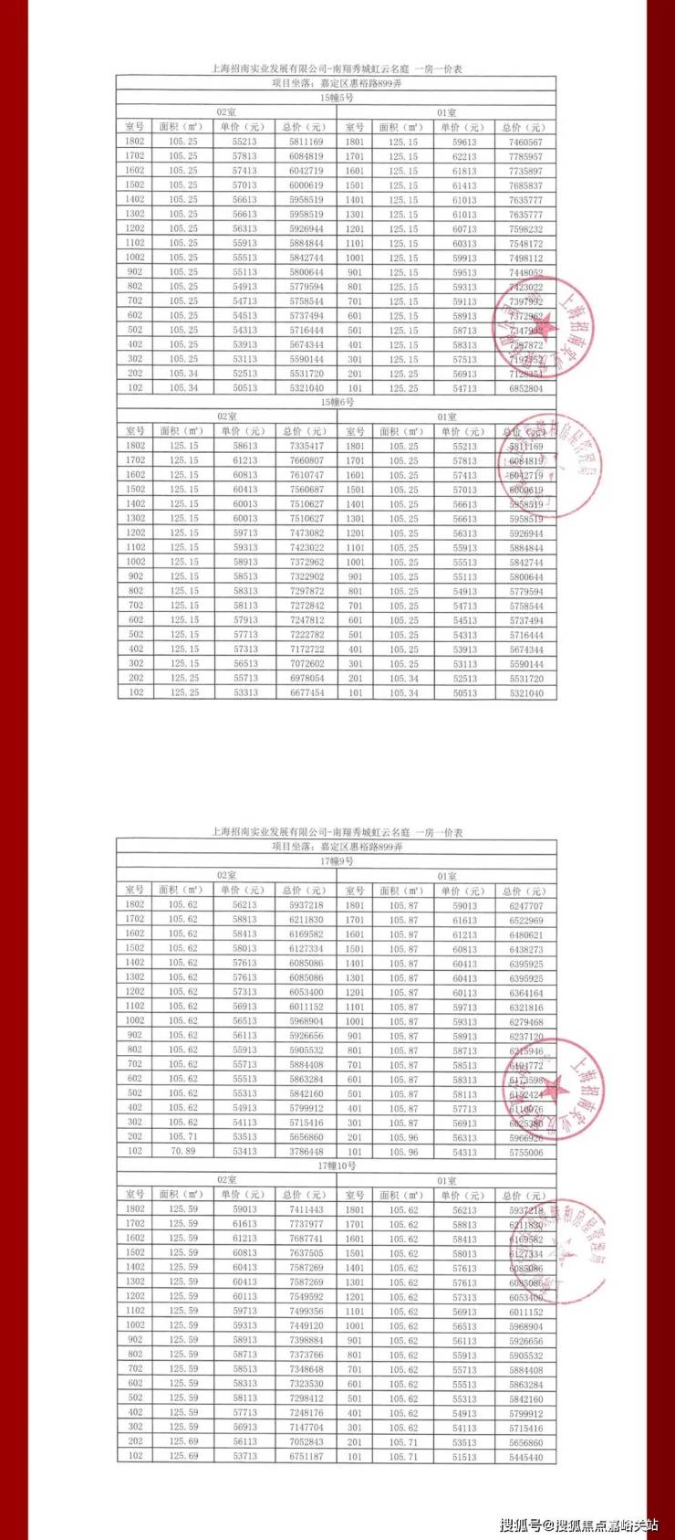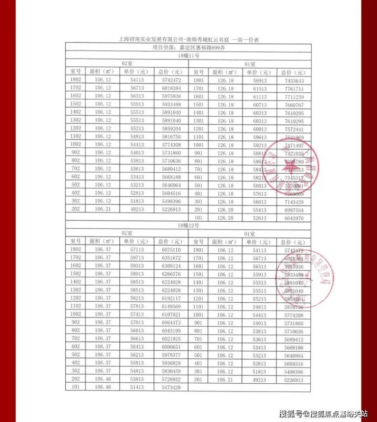 虹桥璀璨领峯一房一价表: