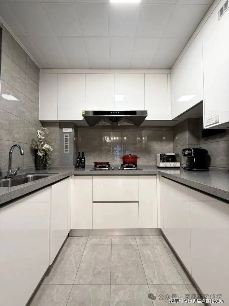 进一步观察细节,厨房U字形、入户玄关、房间全飘窗,皆是更高利用率的体现。