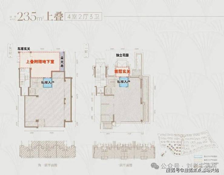 首先,上叠是北向 私享入户花园,独门独户,室内私家电梯 ,尊崇感与私密性都有保障。