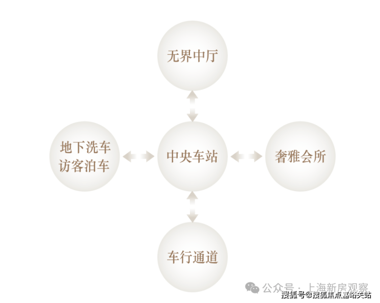 作为地下的驱车通道,本身也是 整个空间的枢纽平台,连通海派会所、地下庭院,高效抵达的同时,保证了业主的私密性,营造独一份的尊崇体验。