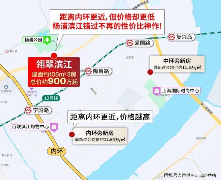 一方面,项目距离内环直线约800米,是目前整个杨浦滨江距离内环最近的项目之一,但项目的均价却不到约11万/㎡。