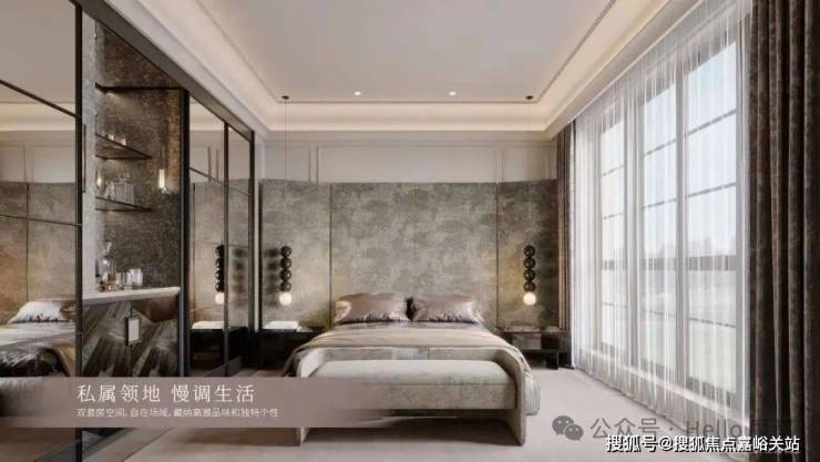 衣帽间、梳妆台、2米大床甚至是浴缸,都可以轻松容纳,再加上超大落地窗的设计,居住舒适度直接拉满!
