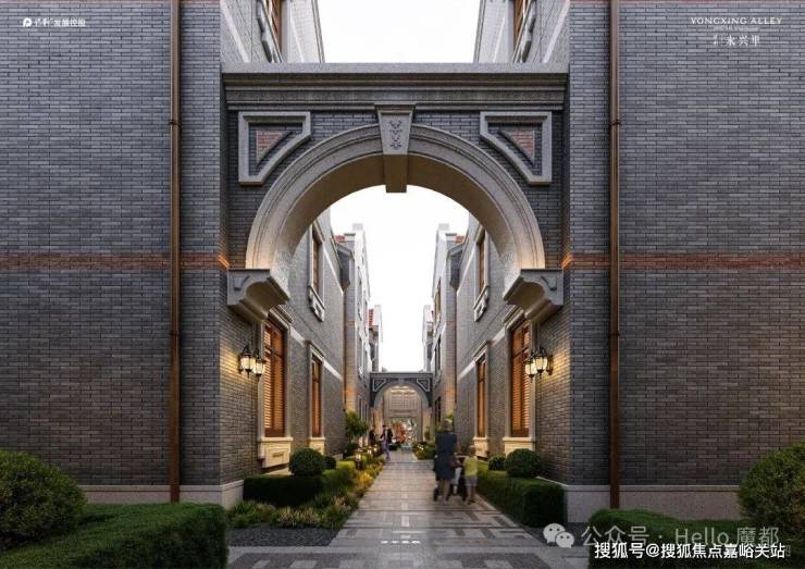 复刻海派里弄格局,融合骑楼、拱形门坊、红砖清水墙等元素,赓续衡复风貌区的历史文脉;