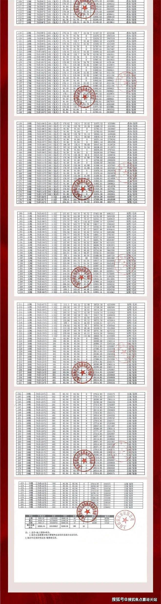 项目一房一价表: