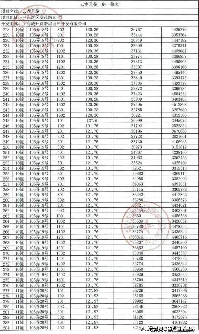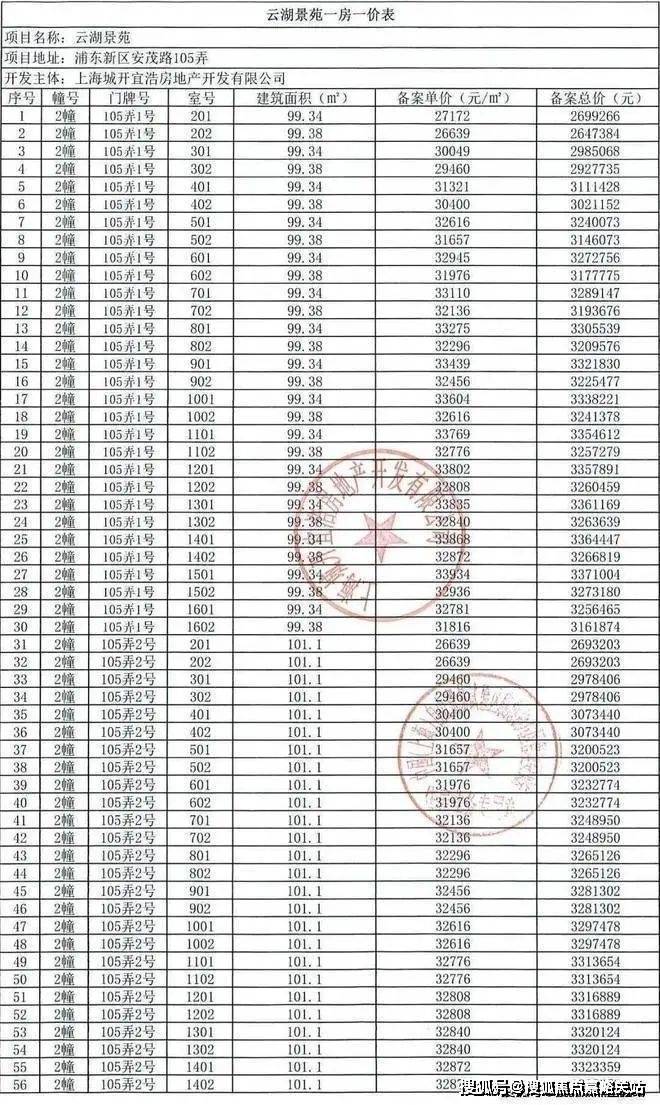 上实望海一房一价表