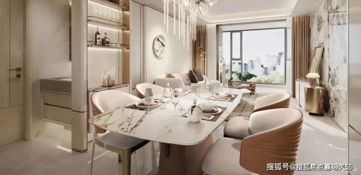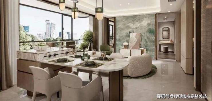 项目在产品打造上可以说是拿出了巨大的诚意。立面采用公建化鎏金幕墙,独创T型悬挑体系+流体曲面算法,打造中环封面;