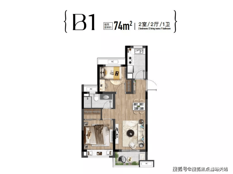 🏠产品介绍:在售建面约73-74㎡两房 总价约320-340万