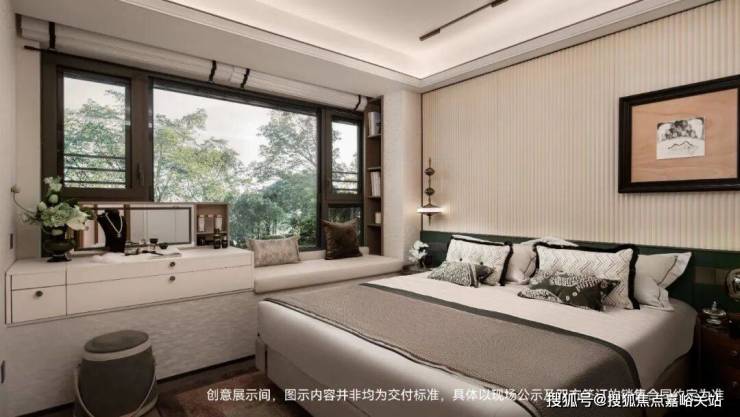 主卧可以放下双人床和床头柜,而且两个卧室的衣柜都是内嵌的,进深大约是60公分,在保证收纳实用性的基础上,视觉上和墙面形成统一。