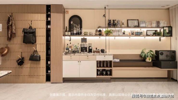 从进门开始,到电视机墙旁边的日咖夜酒吧台,都被设计成了储物空间。