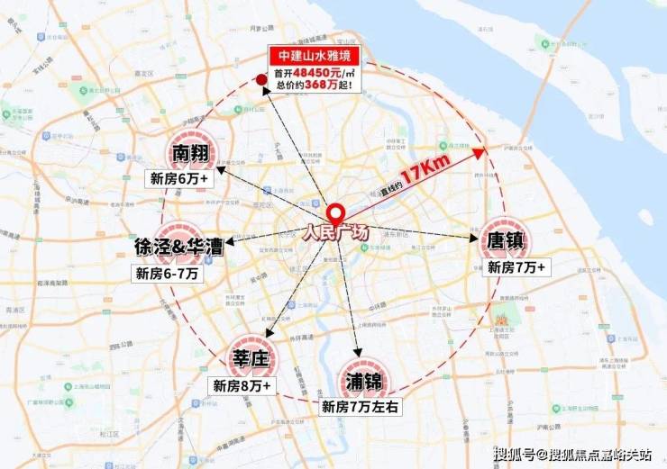 从环线的角度上来看,项目直线距外环仅约2.5公里,目前外环沿线的板块如南翔、徐泾、梅陇、唐镇等地的新房均价大多都超过了6.5万/㎡,总价更是动辄7字开头,甚至800万起步。