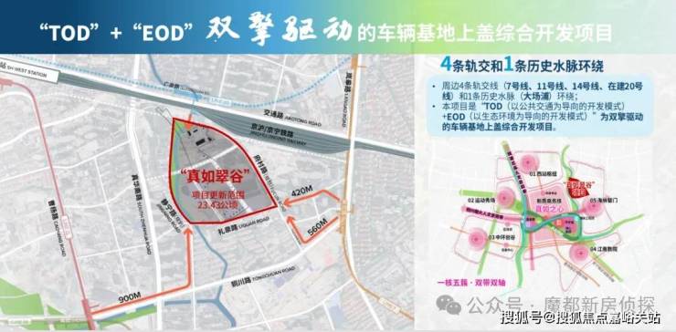 项目地处真如副中心东部,更新范围约23.43公顷。项目以“TOD(以公共交通为导向的开发模式)+EOD(以生态环境为导向的开发模式)”为双擎驱动的车辆基地上盖综合开发项目,紧邻东侧轨交7号线岚皋路站和北侧轨交20号线广泉路站(在建)。
