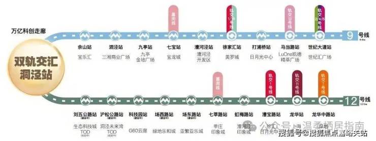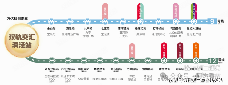 未来的华发海上都荟云间印,9 号线(已运营)与 12 号线(在建)洞泾站双轨交汇, 9号线4站可换乘机场联络线(已运营),11站直达徐家汇;12号线6站直达莘庄商务区,高效生活圈自此划定。