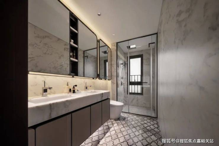 细节方面,主卧套房设计,保证了私密性。主卫的双台盆设计更是相当贴心。能实现男女主人共同洗漱的温馨场景。