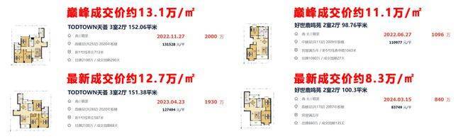 比如莘庄TODTOWN天荟,成交价突破13.1万/㎡,如今最新成交价依旧高达约12.7万/㎡,同区域没有新房,我们取样了同样紧邻莘庄地铁站的好世鹿鸣苑,成交价直逼11.1万/㎡,如今最新成交价仅约8.3万/㎡。