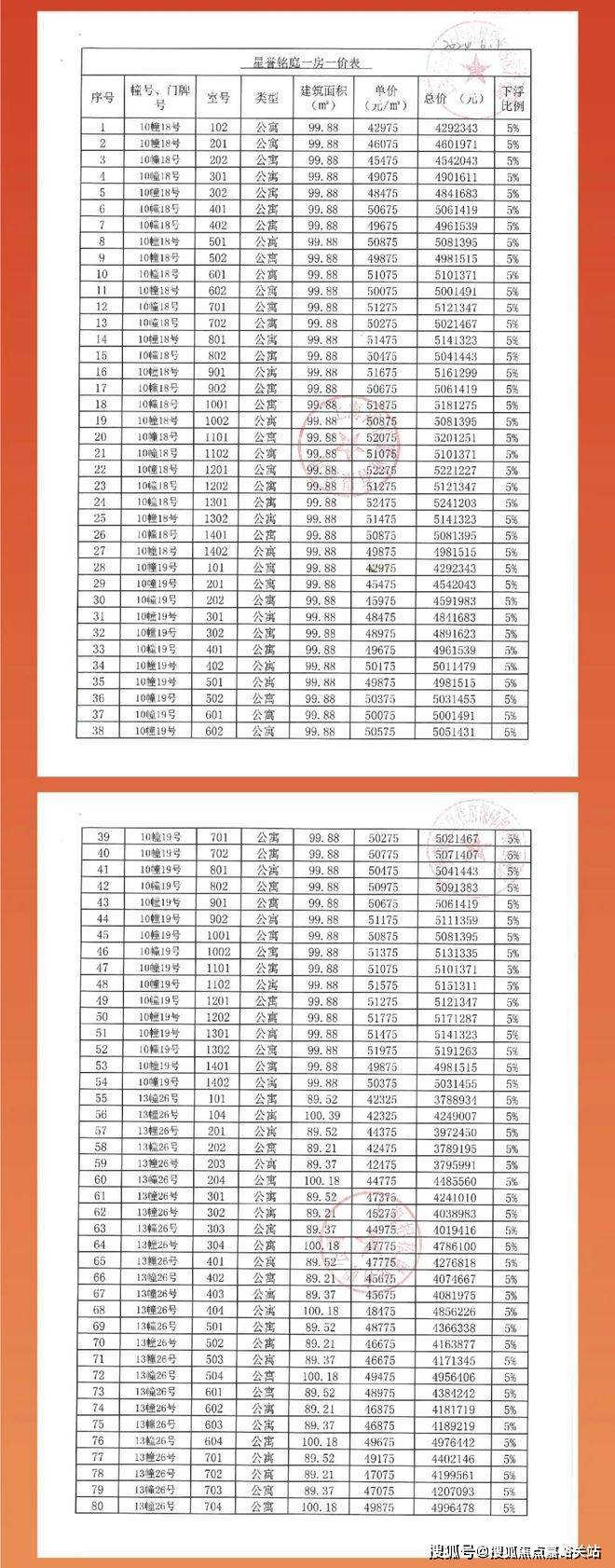 前期一房一价如下