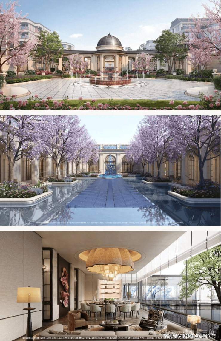 以水为引,起承转合 ,以 海天华堂、华亭烟雨、凤亭问泉,清涟夜月、黄浦秋涛等 景观组团,悠然铺陈 东方院落式 归家礼序。