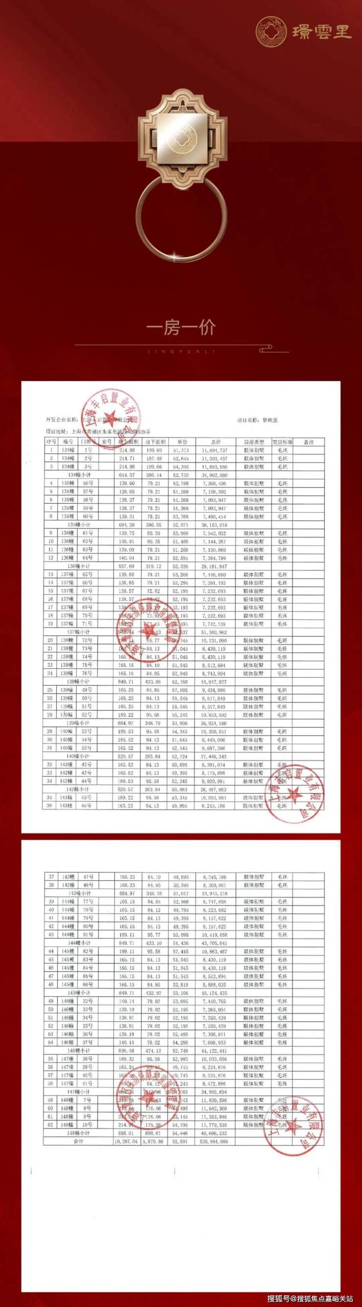 项目一房一价表▼