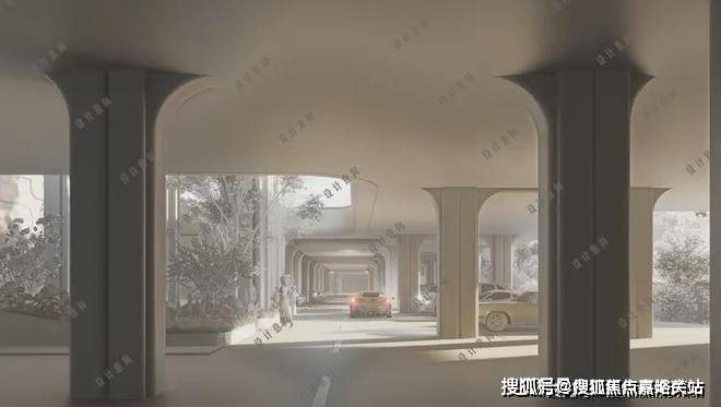 人行动线则顺势抬升至地上二层,可以实现更彻底的人车分流。