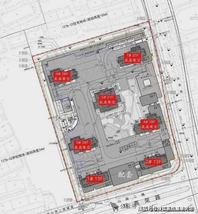 根据设计方案显示,项目拟建2栋13层小高层+5栋25-28层高层,总户数290户。