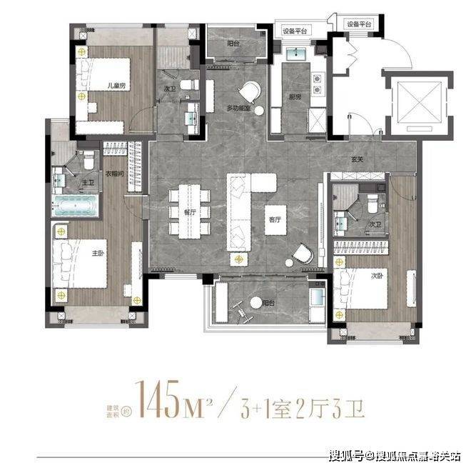建面约145m²户型图