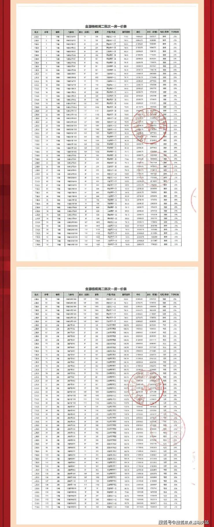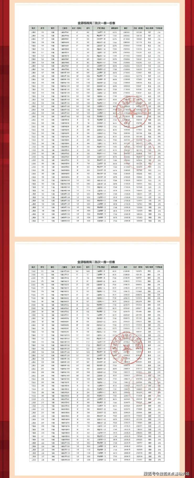 二:一房一价表