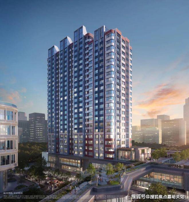 比如,选取珍珠蓝、香槟金、海派砖红等色彩,约270°圆弧建筑立面。