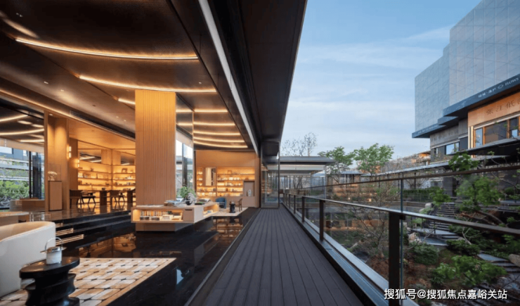 其中最令我惊喜的是这个占据社区最佳观景位的"悬亭茶室"。这是一个悬浮式的空间,一方面可俯瞰整个下沉庭院,景色绝美;另一方面,与亲朋好友在此品名洽谈聚会时,颇有“高山流水觅知音”的东方意境。