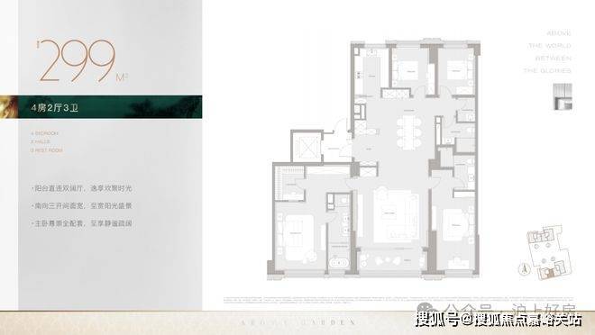 1.四卧均带独立卫浴,南向双卧为「超级套房」