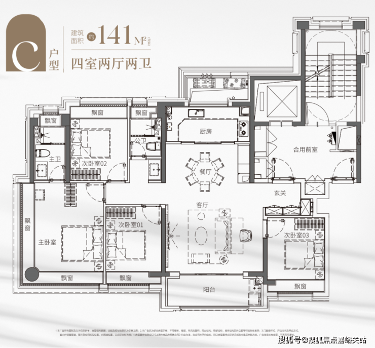 主卧套房设计, 自带270°转角L型飘窗 ,实现无界视野,躺在床上也能享受环幕赏景。