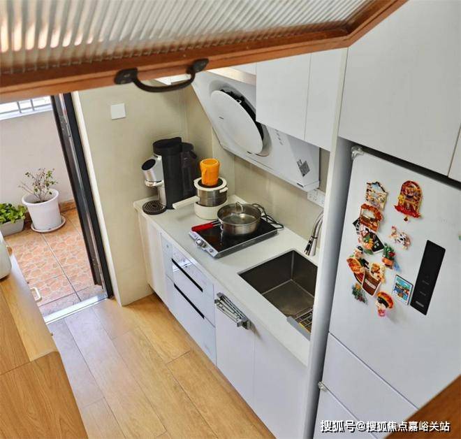 她的小家, 类似于老式的多层小楼,入户门的位置是一个露天的小阳台,但在推门进入家中后,这种老旧的气息则被一扫而空,取而代之的,是一间干净整洁的开放式厨房。