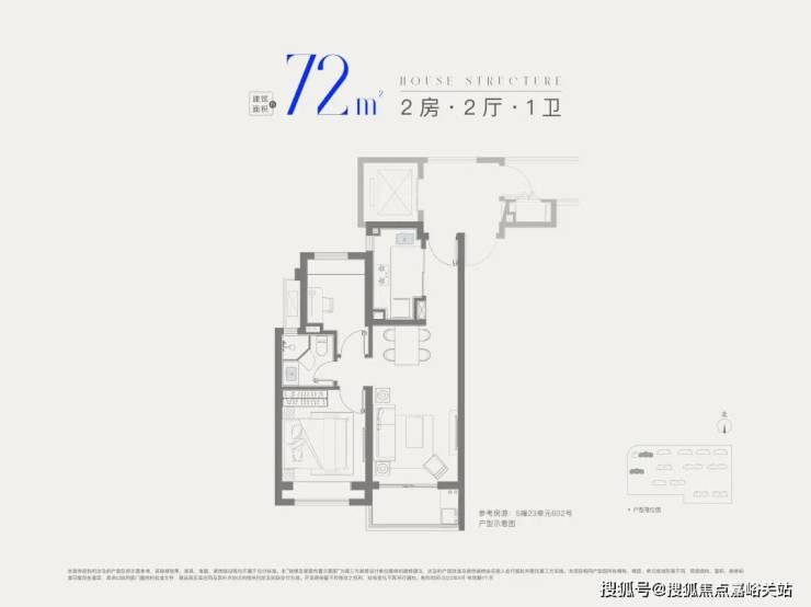 建面约72㎡2房1卫,做到双开间朝南+全卧室带飘窗, 总价低至2字头,是刚需上车2房的优质之选。