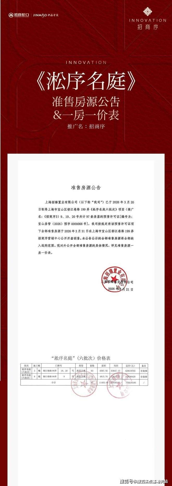 一房一价表发布!宝山淞南「招商序」明天认购!地铁上盖的这个中环项目再现神级户型,93%实得率,700万即可上车!