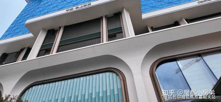 豪宅铝板、玻璃都很常见,但中建玖上琅宸用上了陶板,并且创意和审美独一档。天青釉面工艺,结合落地玻璃和金属线条,还是有趣的非对称设计,从不同角度看都独具风格,现场比效果图更有质感,未来在市场上也更有竞争力。